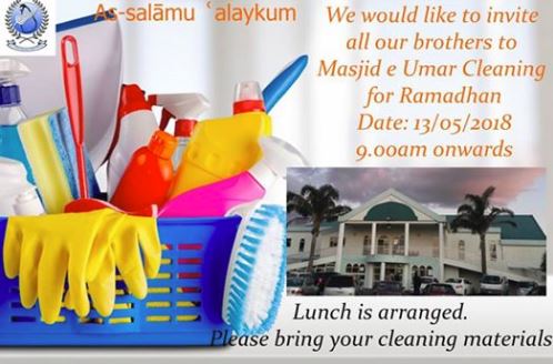 | Masjid e Umar cleaning for Ramadhan was held on 13 May 2018, and Onehunga Masjid cleaning for Ramadhan was held on Onehunga Masjid cleaning before Ramadhan 6 May 2018 Read more... | |